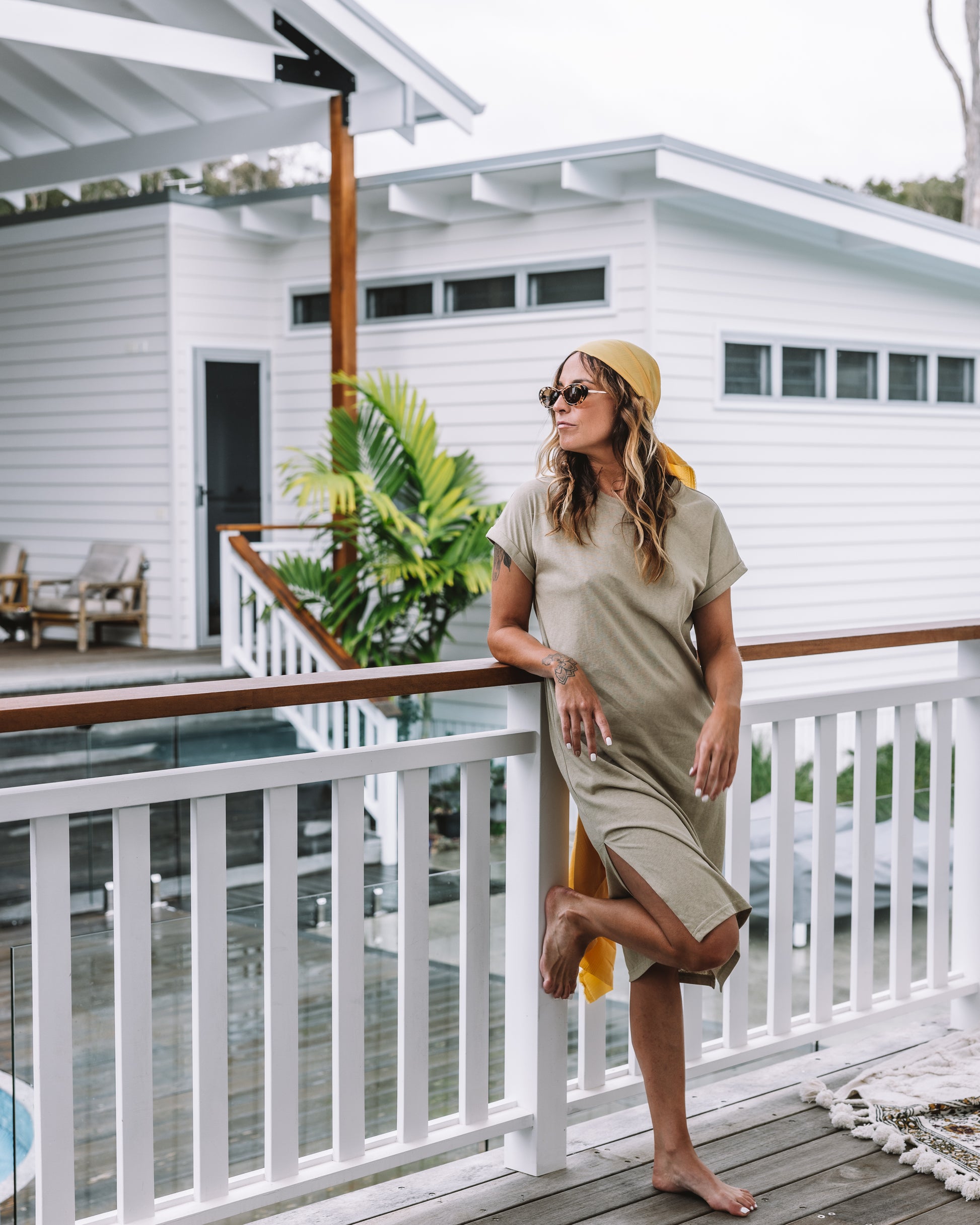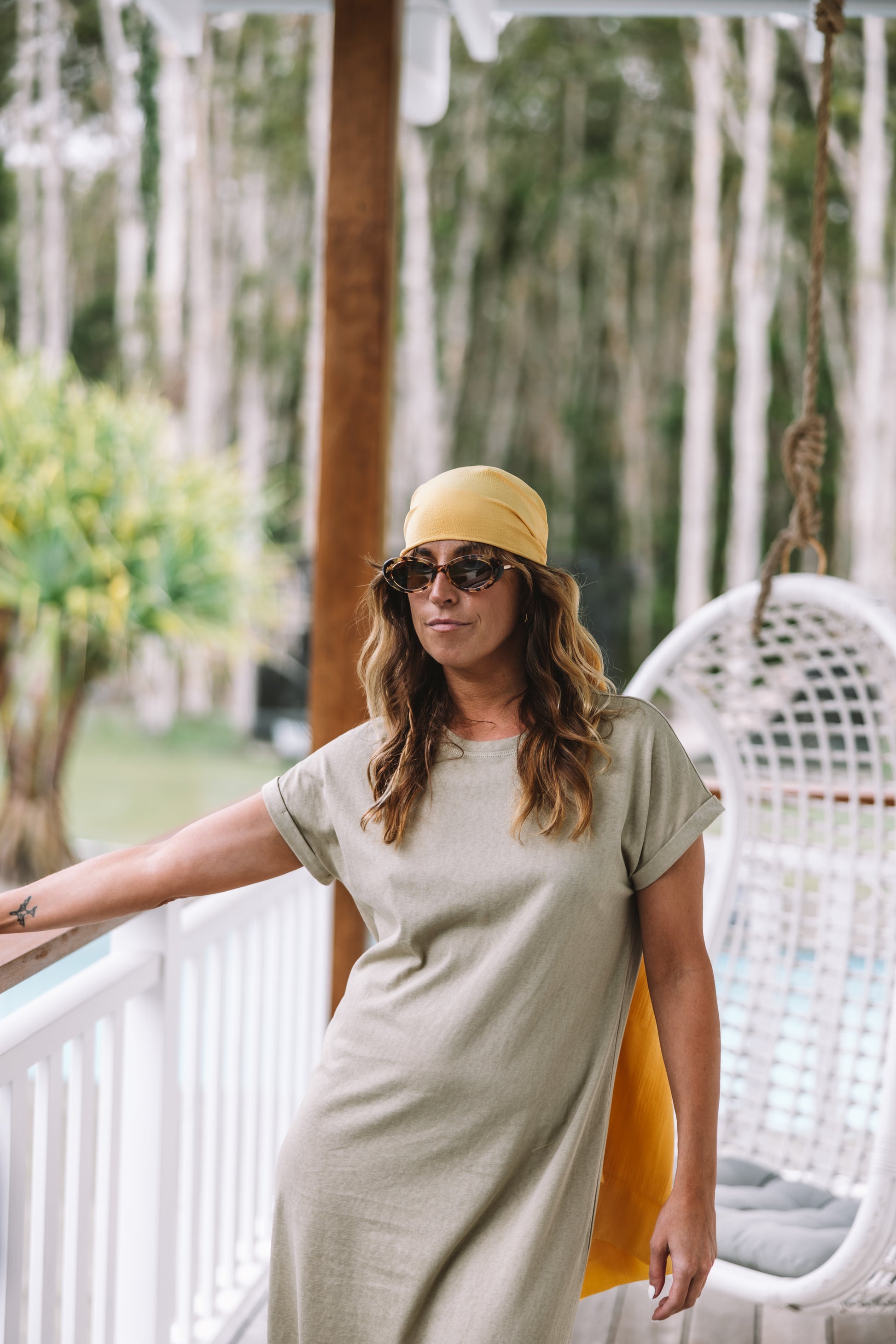 The super soft T-shirt dress in Olive branch, this dress is easy to wear and perfect for any occasion. The colour like the popular sage, adds a softness to your casual look. Dress it up with heels and a wide leather belt or down with sneakers, this versatile piece will quickly become a staple in your closet.